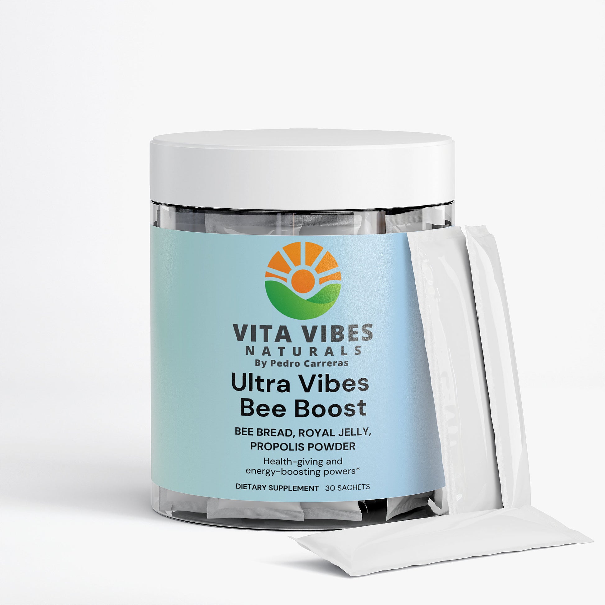 Ultra Vibes Bee Boost is a smoothie additive consisting of concentrated bee bread, propolis, and royal jelly.